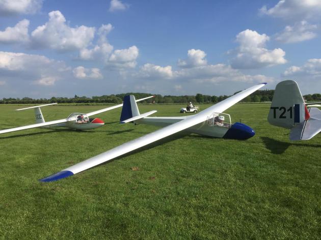The blue tipped one, her name, for she is a “she”, despite the fact that she is totally silent at all times, is “Cayate”. This is because she is an Alexander Schleicher K8 glider. She was built in ’63, has a 15m wingspan, is made mainly of wood covered in cloth and weights only 190Kg. What else can I say other than I have had many hours of great pleasure inside her (is this comment against the correct picture I wonder…).
