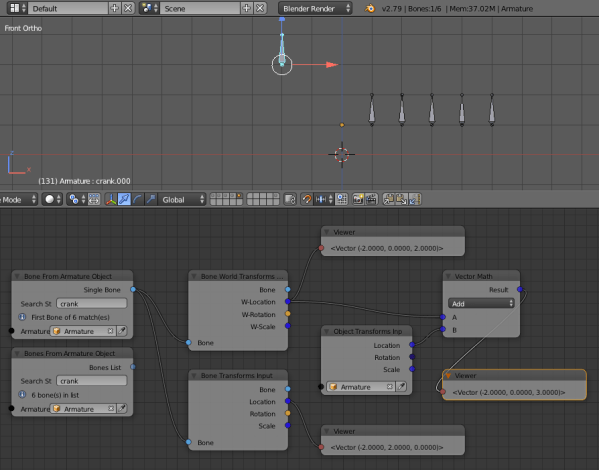 The “Bone Transforms Input” and “Bone World Transforms Input” nodes both work in a similar fashion, except for what is output from them.
