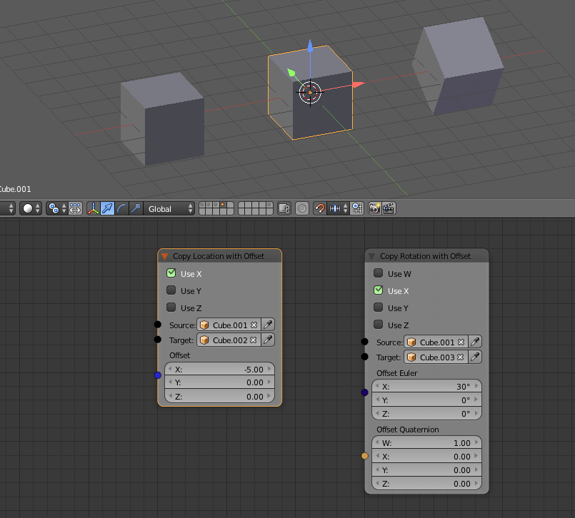 If you had bothered to read the AN Docs….. no don’t tempt me, you would know that the Copy Location With Offset code is in those docs, so credit must go to Jacques, the Copy Rotation With Offset, is just my alterations to the previous node so it rotates rather than moves. I didn’t do one for scales, because I could not see any possible use for it.
