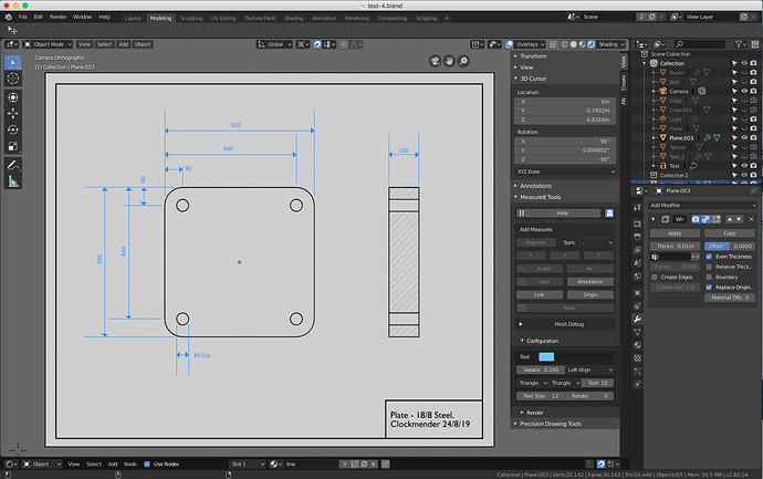 Examples of where this is going; to produce Technical Drawings from accurate models in Blender: