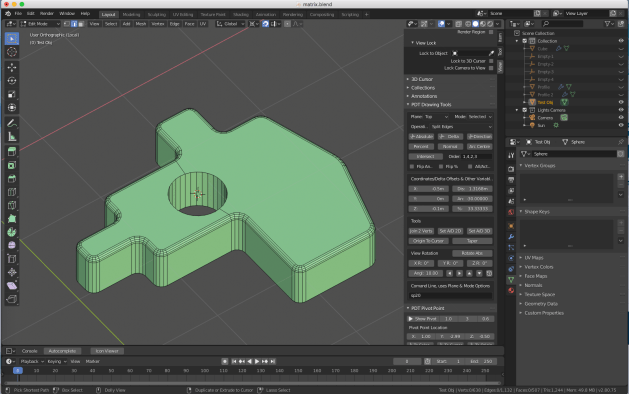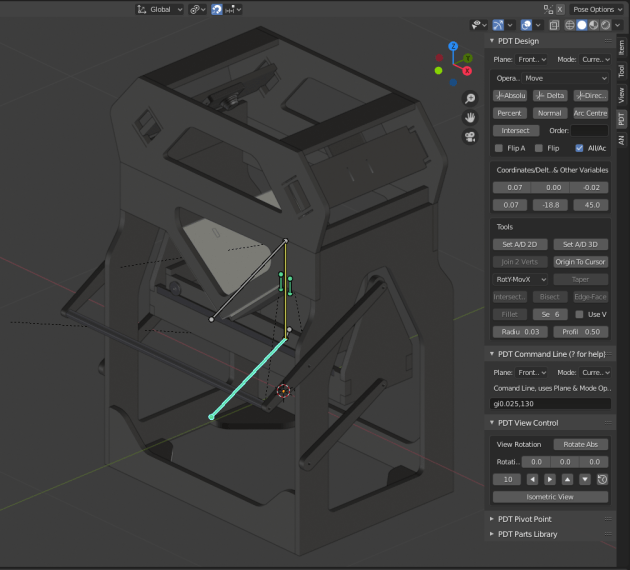 9/12/2019 – Following review by Blender Foundation, PDT is now approved for shipping with Blender and will be in builds of 2.8 from now I believe. A big thank you to the Blender Devs and to Ermo for all his work in getting the code up to standard, including format and Docstrings. There is still work to do on the Wiki, which needs more explanation of workflow and CAD design principles. These are underway with the building of this model:
