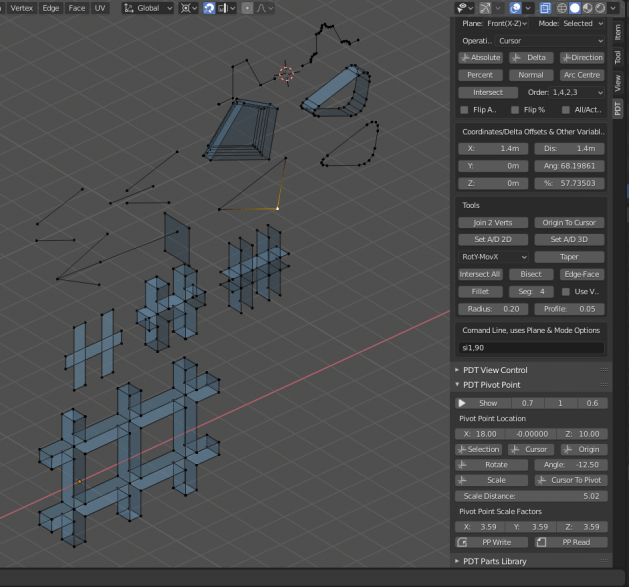 9/10/2019 – Following a discussion with the author of the TinyCAD Add-on, we (Ermo, is now helping with this project) have been given permission to build some of the TinyCAD processes into PDT, namely Extrude Edge to Face, Bisect Edges and Intersect All We have also added a Fillet Tool, that works on edge loops. We have also added a scale feature that works on two dimensions (Before and After) rather than users having to do the maths, more once the next release is available.