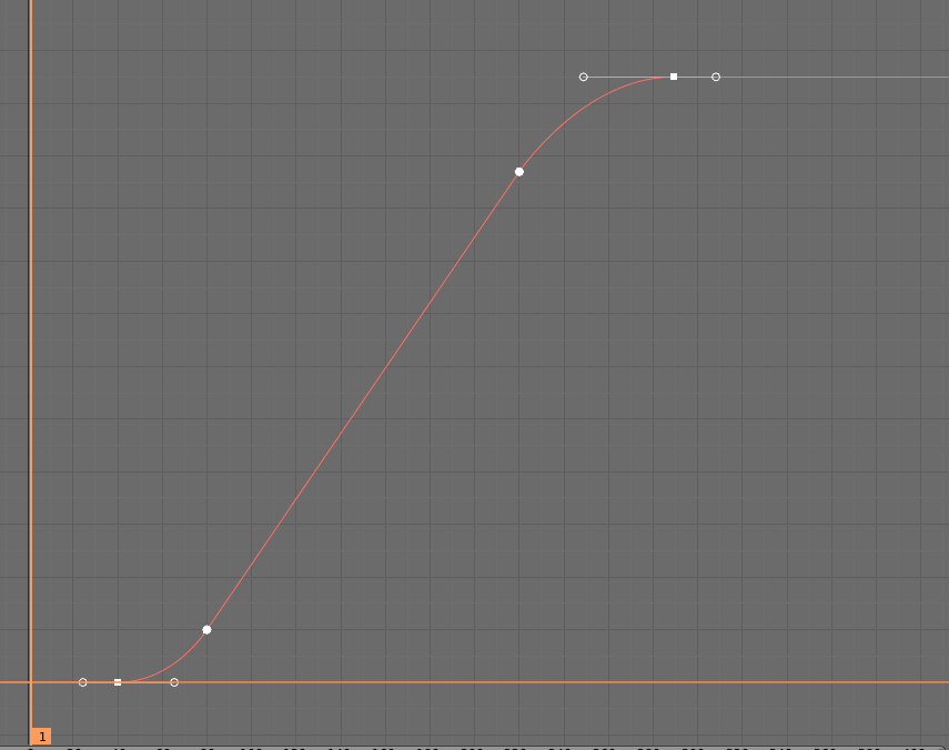 There is also an Expression node to work out, based on the current speed and frame offset, what the next keyframe should be. So I have asked it to give me the offset after 140 frames from the previous keyframe – the output is given as around 86.9. The previous keyframed position was x = 10 so the next one after a further 140 frames will be 96.9. I also scaled the keyframe handles for the points at the start and end of the constant speed section to 0 so the curve in between is a straight line, so at a constant speed: